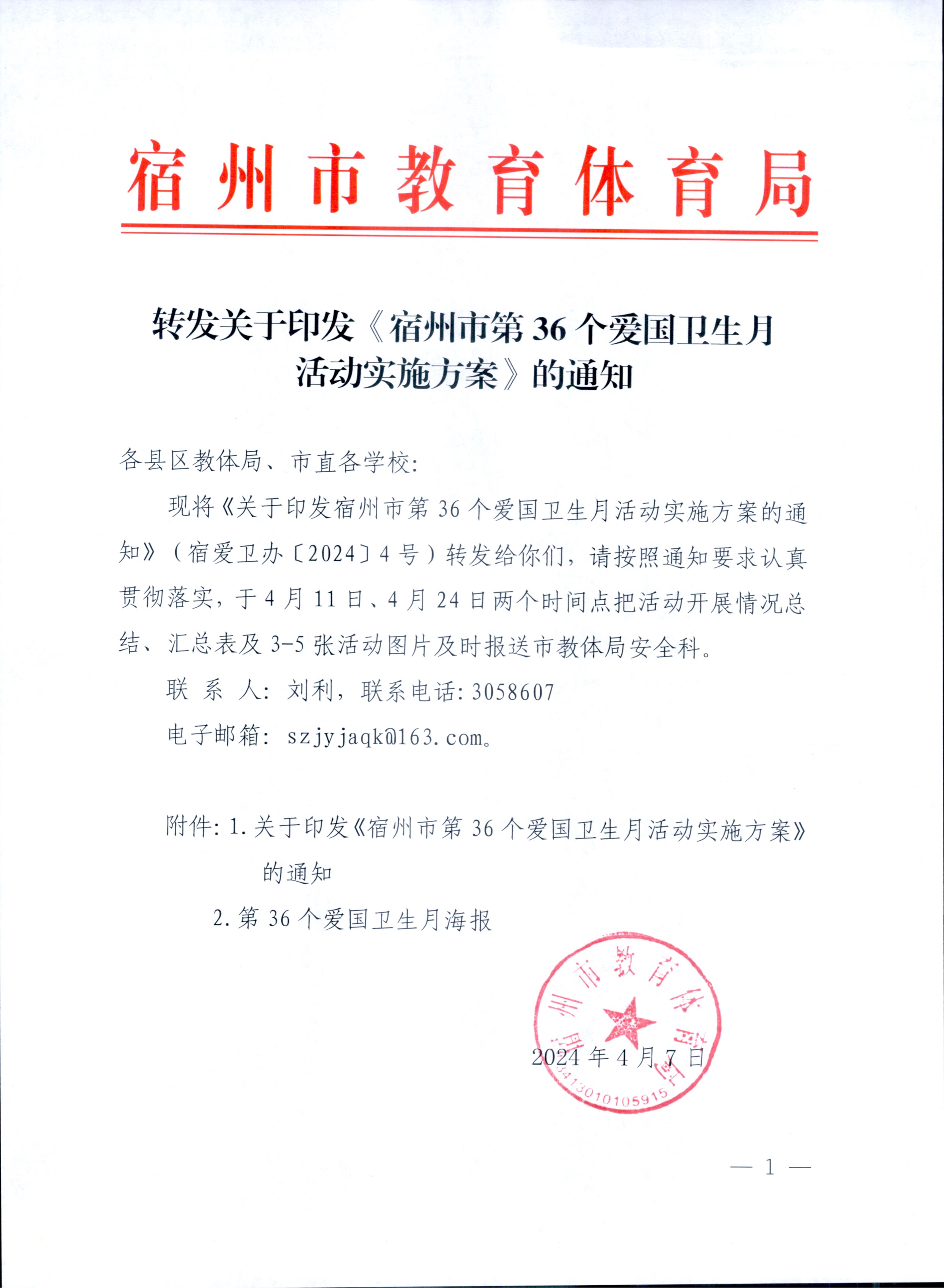 宿州藝文學(xué)校轉(zhuǎn)發(fā)關(guān)于印發(fā)《宿州市第36個(gè)愛(ài)國(guó)衛(wèi)生月活動(dòng)實(shí)施方案》的通知