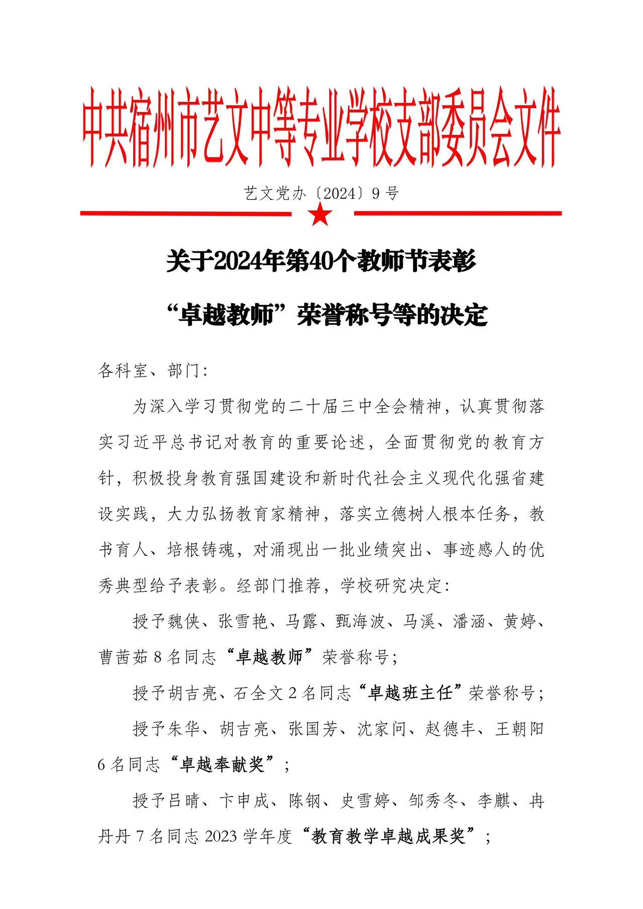 宿州市藝文中等專(zhuān)業(yè)學(xué)校榮耀之星閃耀2024教師節(jié)!
