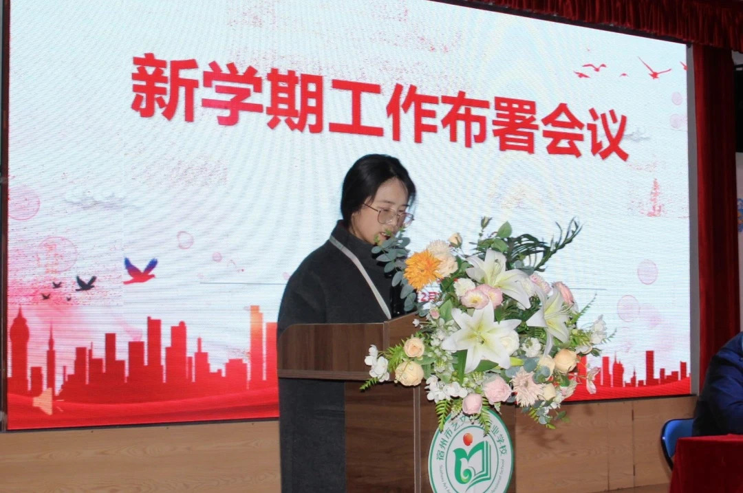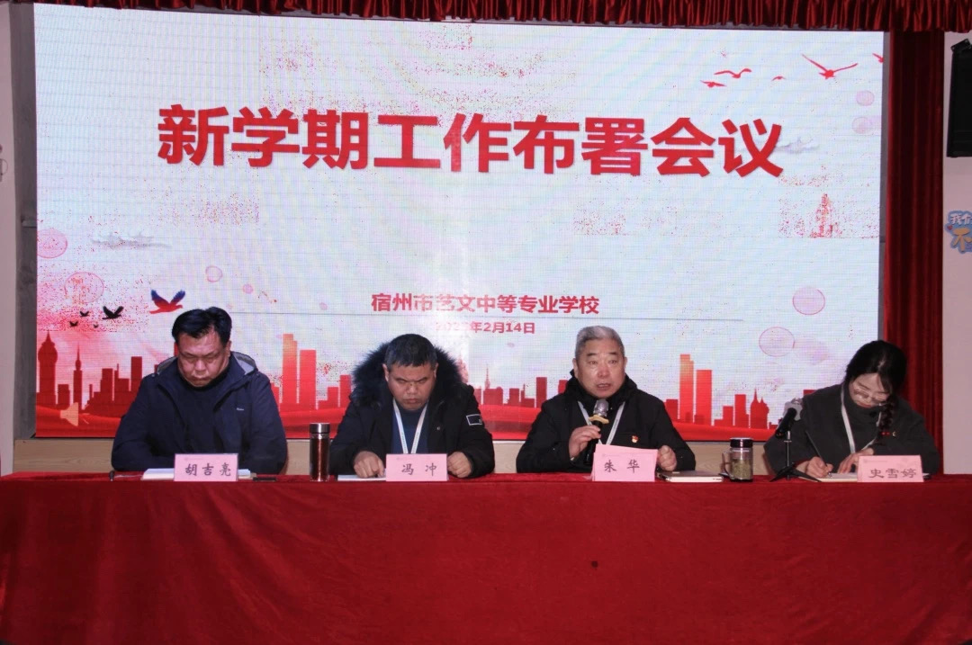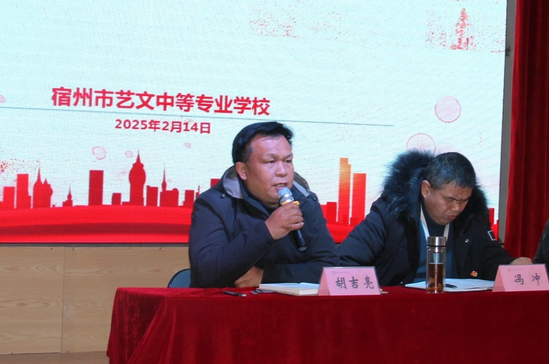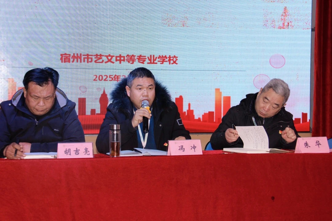 伴隨著金蛇迎春的腳步,滿載憧憬與希望的新學期如期而至。2月14日上午,宿州市藝文中等專業(yè)學校成功召開2025年度春季學期開學工作部署會議。會議由黨支部副書記、工會主席史雪婷同志主持,共四項議程。黨支部書記馮沖、校長朱華、副校長胡吉亮及全體教職工參會。