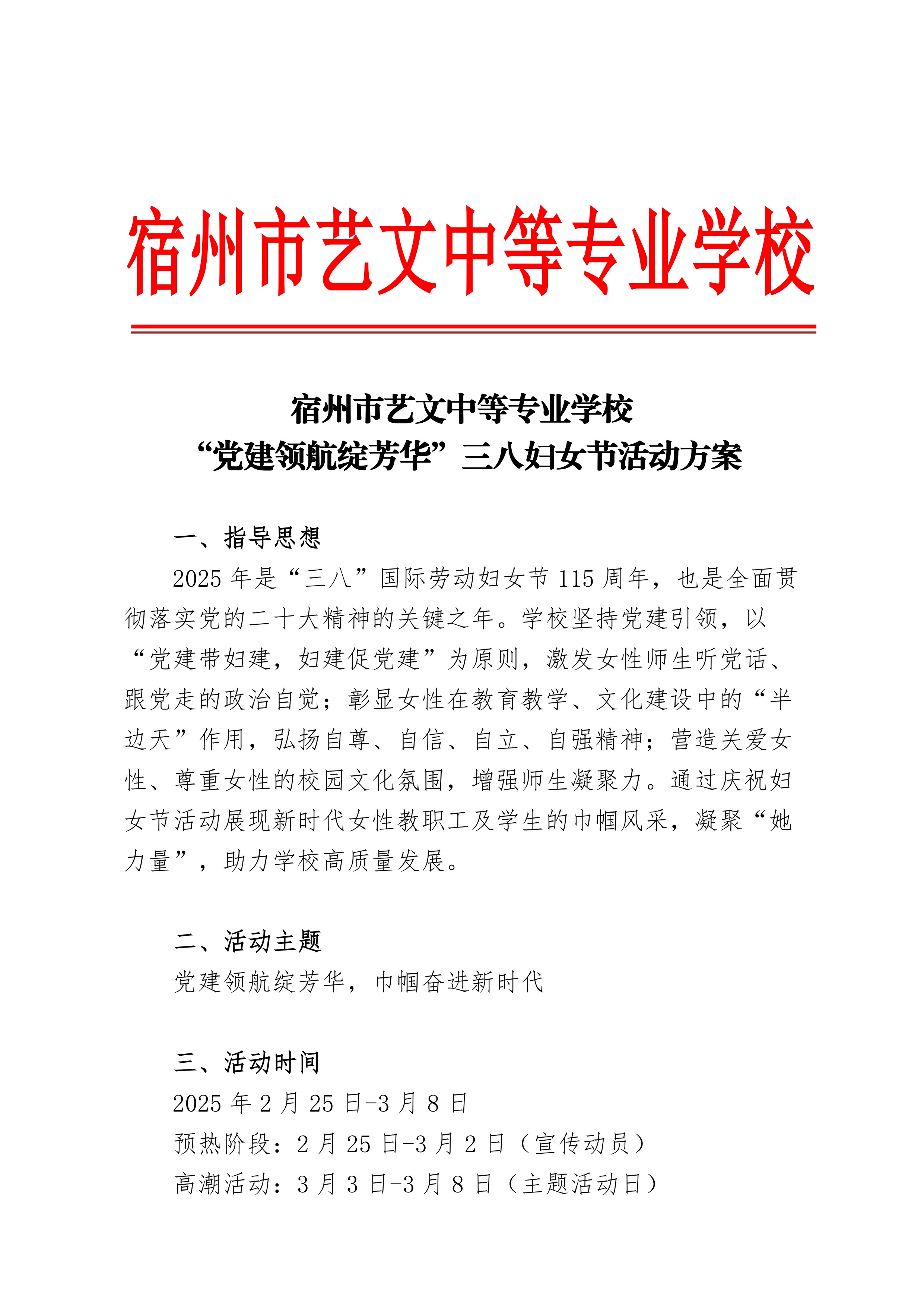 宿州市藝文中等專業(yè)學(xué)?!?黨建領(lǐng)航綻芳華”三八婦女節(jié)活動(dòng)方案