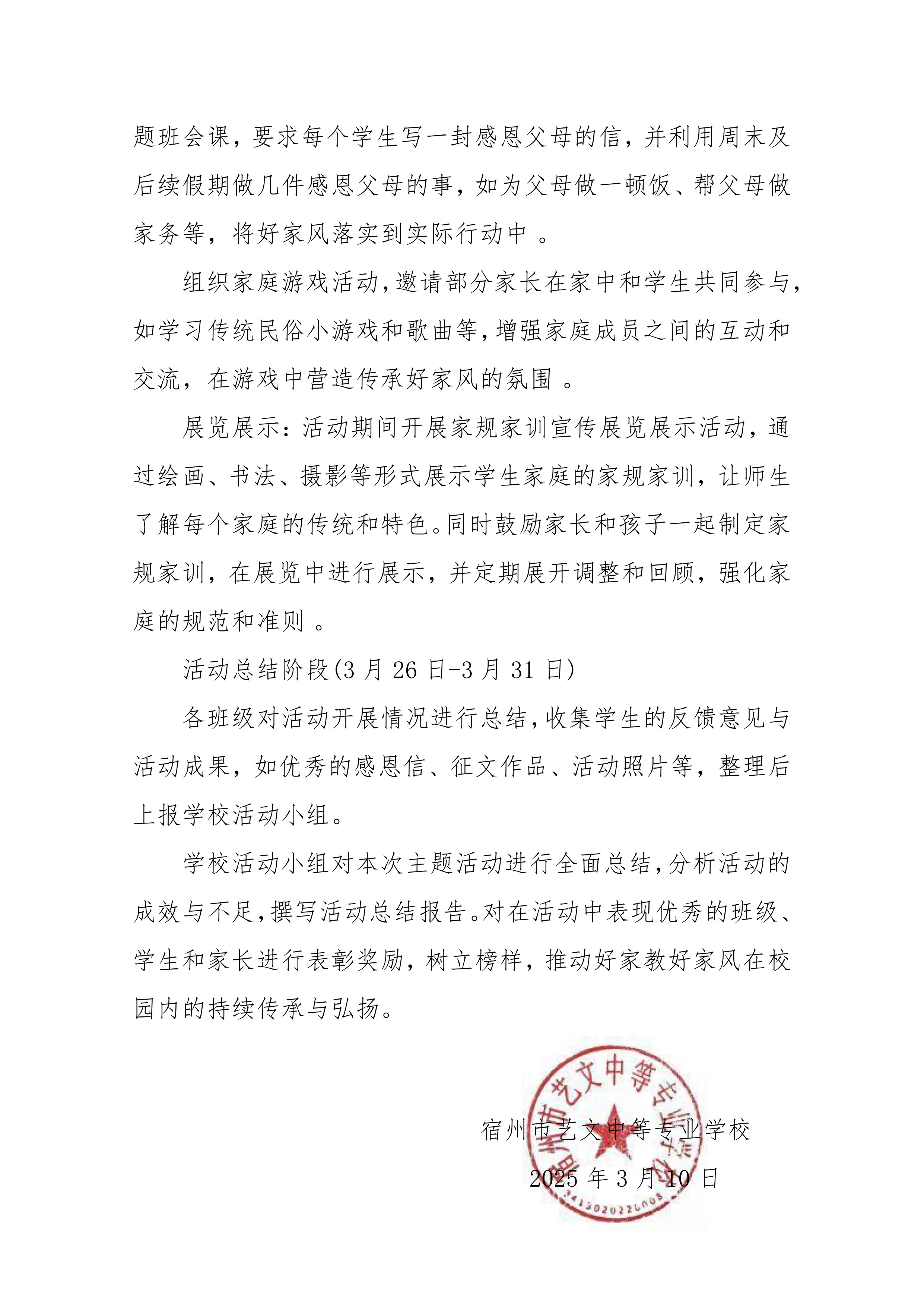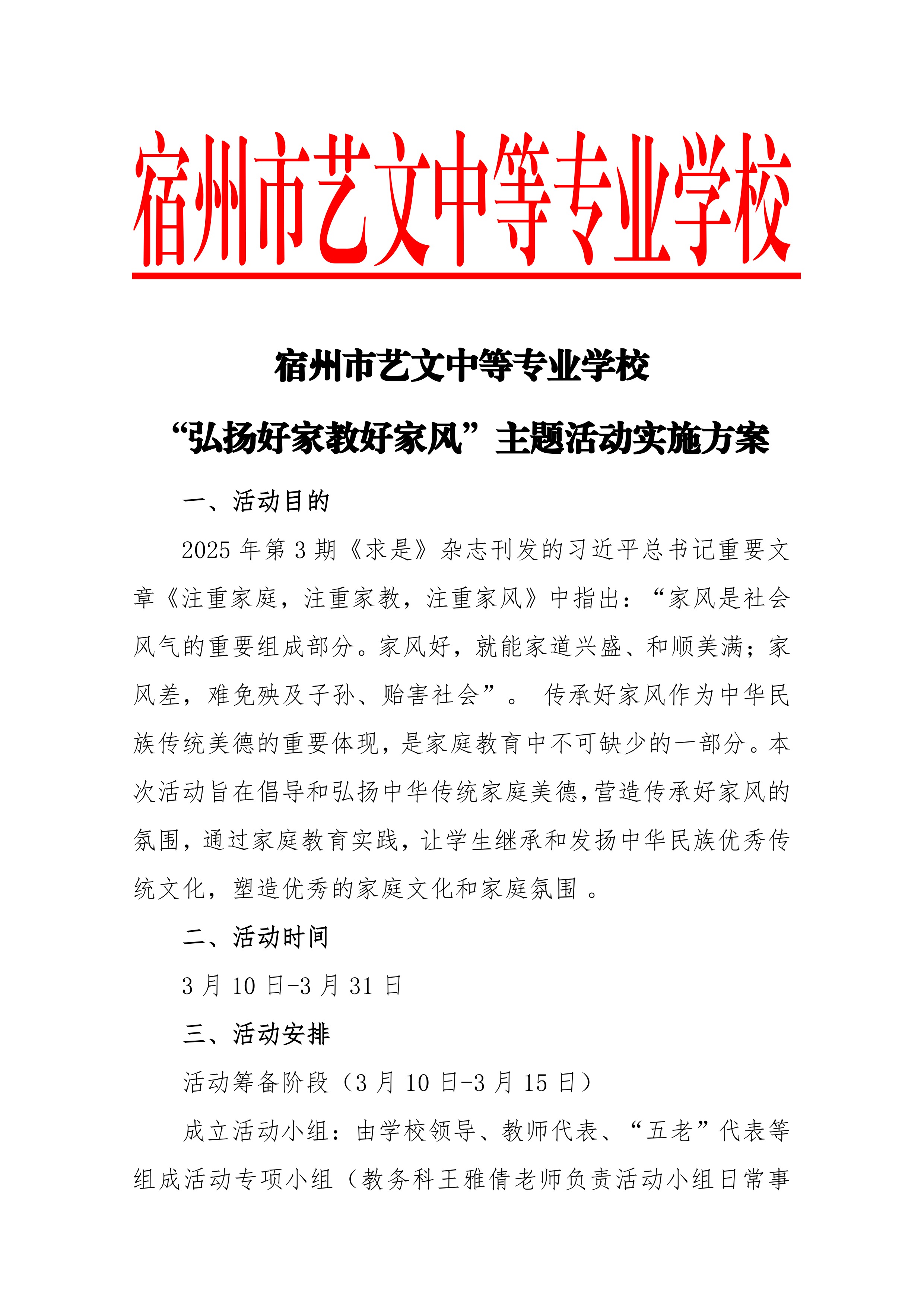 宿州市藝文中等專業(yè)學(xué)校 “弘揚好家教好家風(fēng)”主題活動實施方案