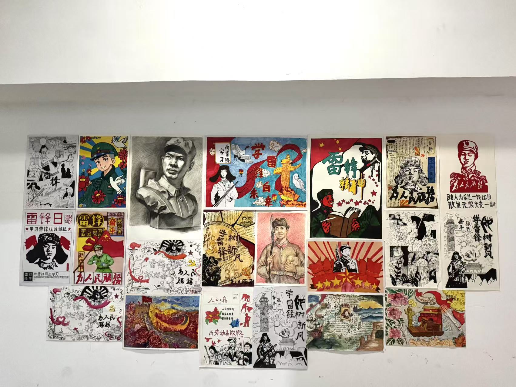 美術組發(fā)起的“鋒行畫卷”主題創(chuàng)作大賽,圍繞“雷鋒故事”“身邊微光”“公益行動”三大方向,激發(fā)學生創(chuàng)作熱情。200余件作品涵蓋素描、剪紙、彩繪等形式,以細膩筆觸展現(xiàn)雷鋒事跡、捕捉生活溫暖瞬間。這些作品在校園內(nèi)形成藝術長廊,師生駐足欣賞,讓大家在藝術的熏陶中深化對雷鋒精神的理解。