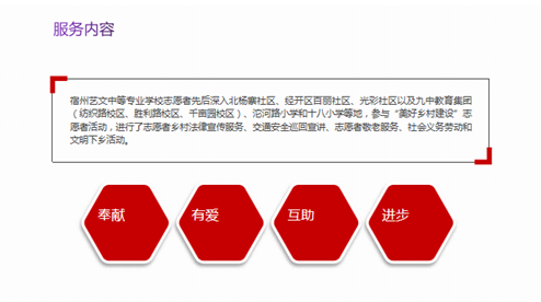 多層次,就是從市到校,從校到級部,從級部到班,三個層次的德育教育相互銜接、互為補充。比如:市級層面我們和關(guān)工委合作,協(xié)辦了宿州市黨是陽光我是苗書畫展,和交警六大隊合作,深入到北楊寨、池湖、沱河路小學,開展民法典與交通安全宣講;學校層面開展了清明祭掃活動、組織觀看黨史、新中國史、改革開放史、社會主義發(fā)展史宣傳片、開展志愿者服務(wù)活動等,班級層面搜集了很多中職生成功范例進行激勵,邀請五老入班講紅色故事,與每一個節(jié)日相銜接,有計劃地召開主題班會等,通過多層次的引導(dǎo),弘揚正氣,培養(yǎng)愛心,培養(yǎng)積極向上的人生觀。