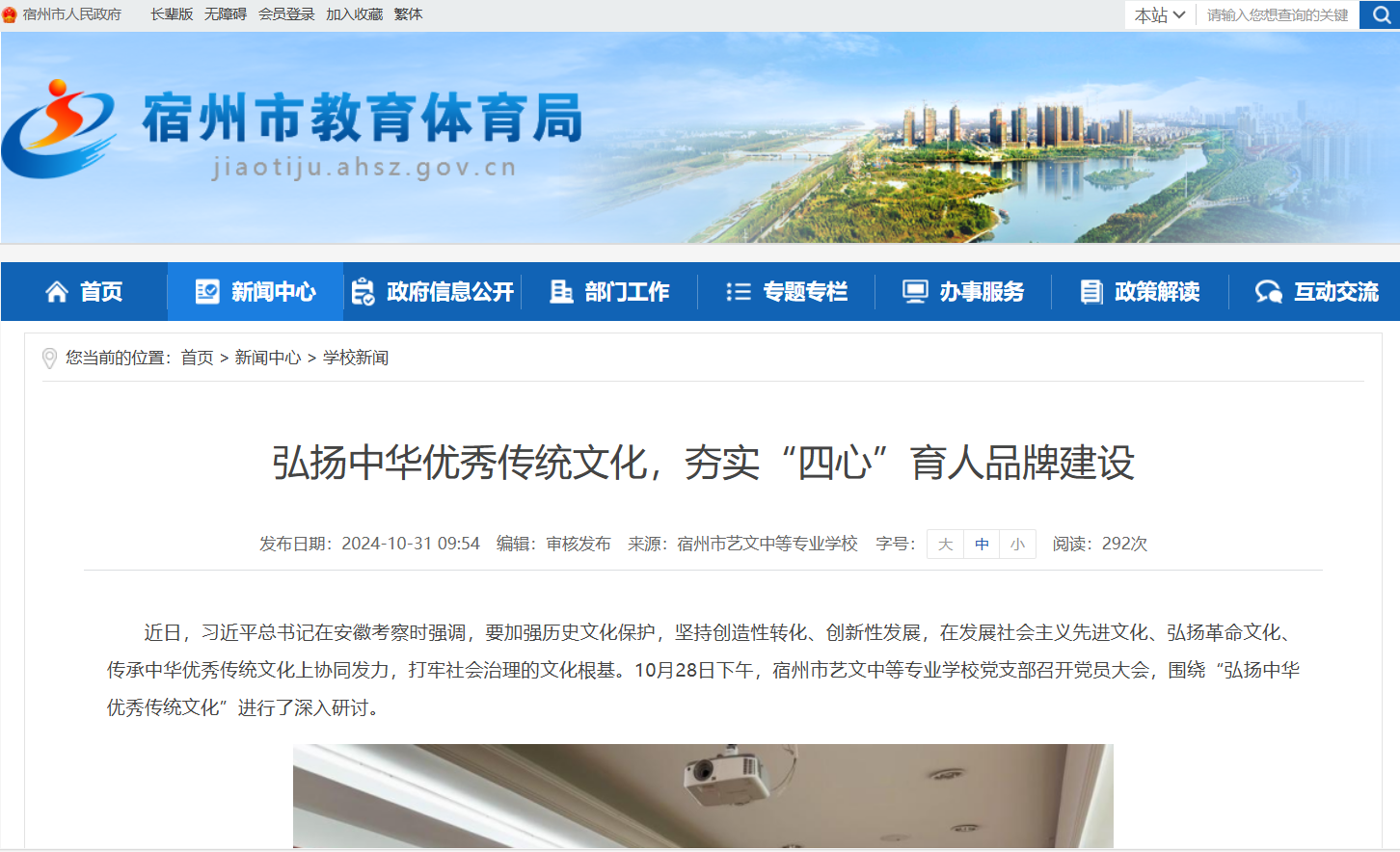 近日,習(xí)近平總書記在安徽考察時強調(diào),要加強歷史文化保護,堅持創(chuàng)造性轉(zhuǎn)化、創(chuàng)新性發(fā)展,在發(fā)展社會主義先進文化、弘揚革命文化、傳承中華優(yōu)秀傳統(tǒng)文化上協(xié)同發(fā)力,打牢社會治理的文化根基。10月28日下午,宿州市藝文中等專業(yè)學(xué)校黨支部召開黨員大會,圍繞“弘揚中華優(yōu)秀傳統(tǒng)文化”進行了深入研討。