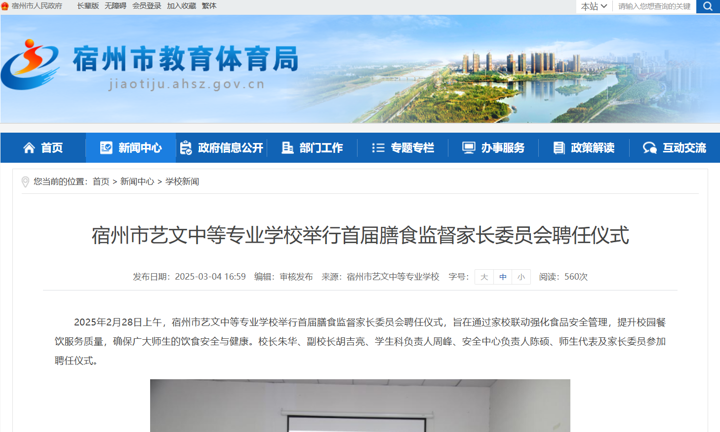 【市教體局】宿州市藝文中等專業(yè)學校舉行首屆膳食監(jiān)督家長委員會聘任儀式