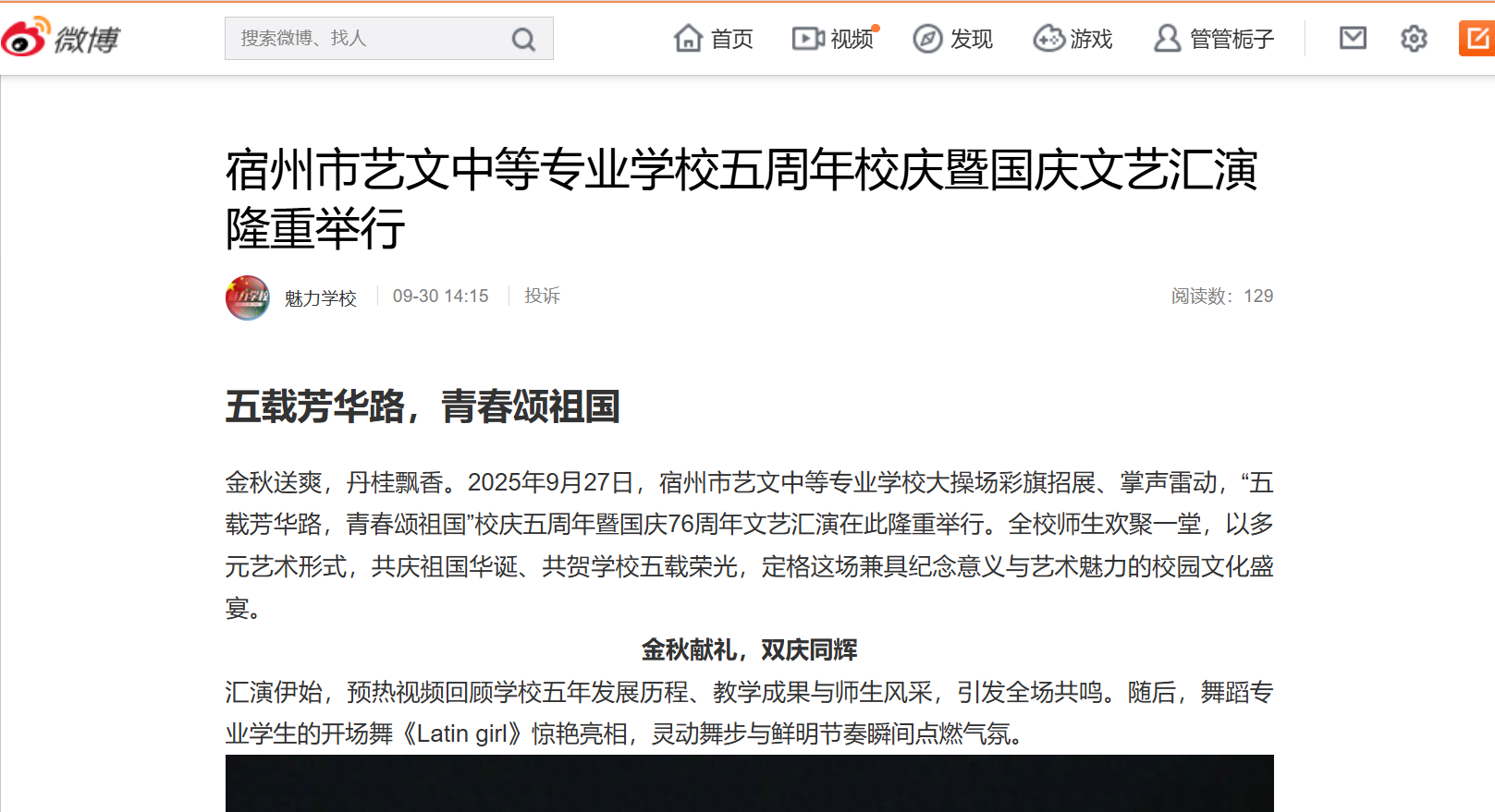 金秋送爽,丹桂飄香。2025年9月27日,宿州市藝文中等專業(yè)學(xué)校大操場彩旗招展、掌聲雷動,“五載芳華路,青春頌祖國”校慶五周年暨國慶76周年文藝匯演在此隆重舉行。全校師生歡聚一堂,以多元藝術(shù)形式,共慶祖國華誕、共賀學(xué)校五載榮光,定格這場兼具紀(jì)念意義與藝術(shù)魅力的校園文化盛宴。