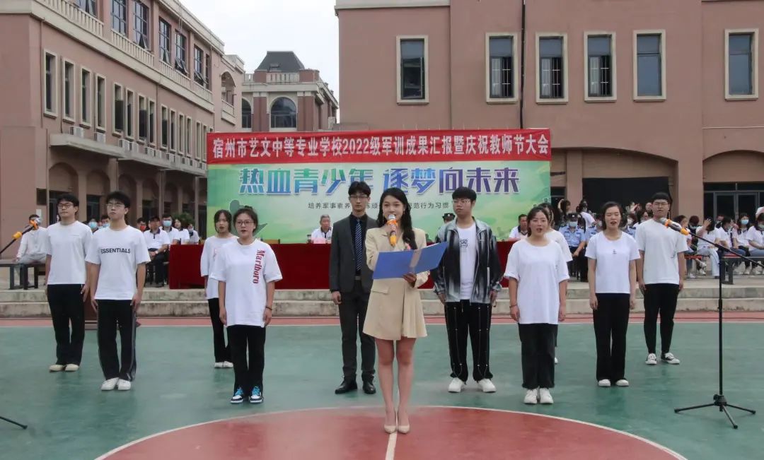 為慶祝22級新生軍訓圓滿結(jié)束和即將到來的教師節(jié),9月8日上午9點,宿州藝文學校在操場舉辦了“2022秋季開學新生軍訓閉營儀式暨教師節(jié)慶?;顒?/strong>”,活動由播音主持專業(yè)的張子林 劉茜兩位同學主持,全校師生共同參與。