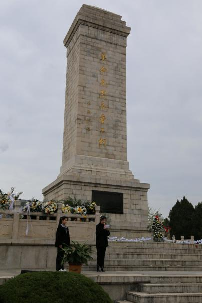 緬懷:全體師生繞墓一周,并將手中、胸前的小白花,輕輕的放在碑前,近前瞻仰紀(jì)念碑。之后,參觀了彭雪楓紀(jì)念館,通過(guò)觀看圖片、文字、實(shí)物等多種形式,深入了解革命先烈們的事跡和精神。