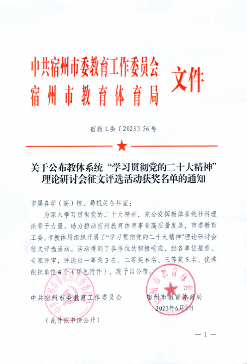 8、2023年4月付振宇和黃秀秀獲得“宿州市優(yōu)秀學(xué)生干部”稱號;沈思軍和張賀獲得“宿州市三好學(xué)生”稱號