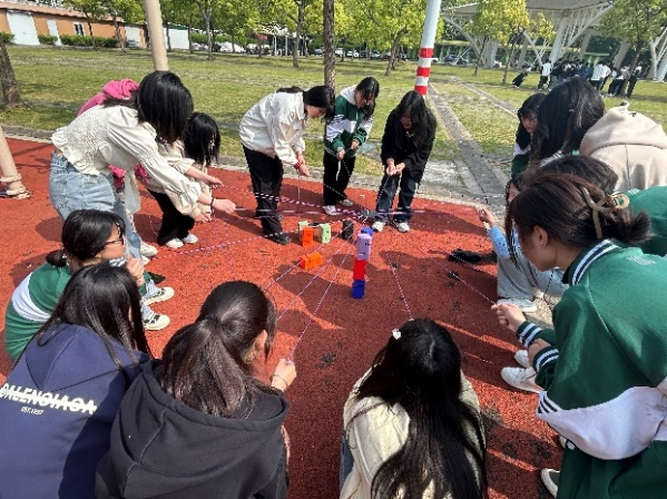 藝文學(xué)校根據(jù)自己的實(shí)際情況,開展班級心理健康教育活動。比如,利用團(tuán)體輔導(dǎo)的方法,通過學(xué)生的互動,如團(tuán)體活動《戴高帽》、《報(bào)紙無敵風(fēng)火輪》、《盲人方陣》、《團(tuán)體凝聚力》等,幫助他們加深了解,改善同學(xué)間的人際關(guān)系,培養(yǎng)他們的合作意識,如下圖所示。很多同學(xué)因此找到了自己的知心朋友,學(xué)會了與人和睦相處的一些基本方法。