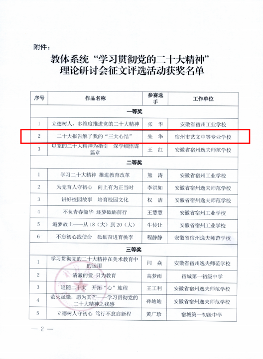 1、在2022年宿州市“新時代好少年,強(qiáng)國有我”主題教育讀書活動中田亞蘭和張雪指導(dǎo)班級獲“優(yōu)秀班集體”稱號。