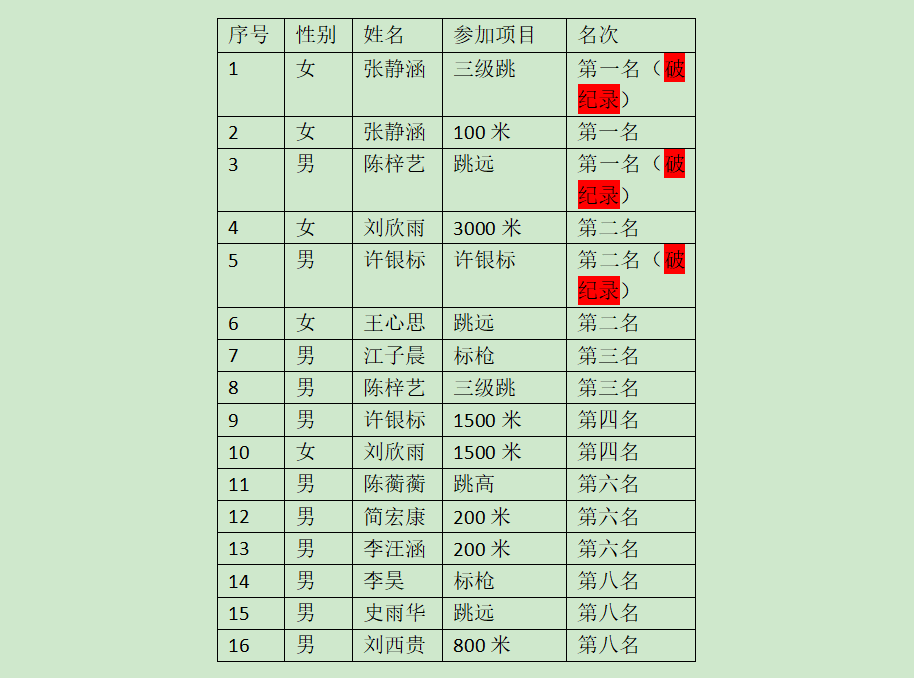 經(jīng)過4天緊張激烈的角逐,我校選手取得了驕人的成績(jī),共獲2金3銀2銅,另有8名同學(xué)名次進(jìn)入前八。其中,張靜涵同學(xué)1人榮獲兩枚金牌,并打破女子三級(jí)跳紀(jì)錄;陳梓藝同學(xué)獲男子跳遠(yuǎn)金牌并打破紀(jì)錄;劉欣雨同學(xué)女子3000米銀牌;許銀標(biāo)同學(xué)男子3000米銀牌并打破紀(jì)錄;王心思同學(xué)女子跳遠(yuǎn)銀牌; 江子晨同學(xué)男子標(biāo)槍銅牌;陳梓藝同學(xué)男子三級(jí)跳銅牌。另有 陳蘅蘅、簡(jiǎn)宏康、李汪涵、李昊、史雨華、劉西等選手在多個(gè)項(xiàng)目中進(jìn)入前八名。沒有獲得名次的同學(xué)同樣展現(xiàn)了藝文學(xué)校拼搏向上的精神,彰顯了他們青春飛揚(yáng)的活力。