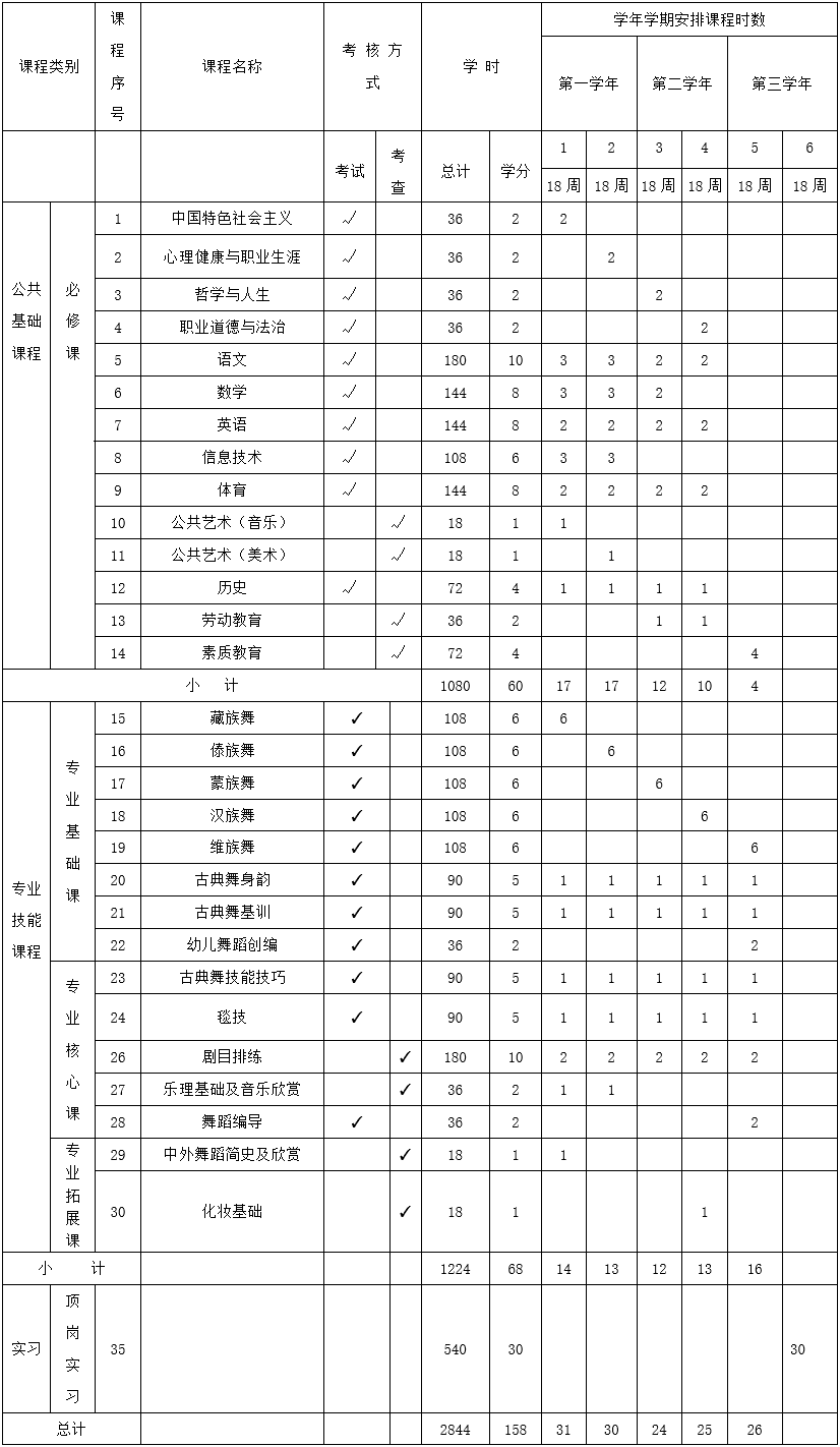 六、舞蹈表演專業(yè)教學(xué)計劃安排