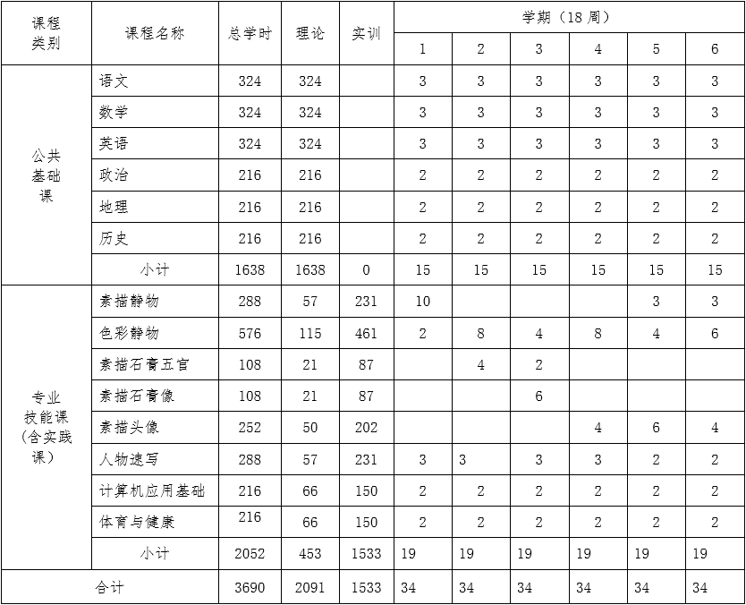 一、繪畫專業(yè)教學(xué)計劃安排(主干專業(yè))
