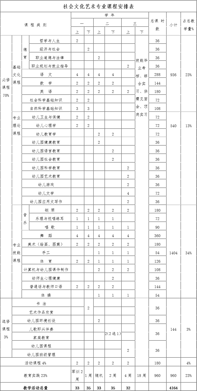 七、社會文化藝術(shù)(幼兒保育方向)專業(yè)教學(xué)計劃安排