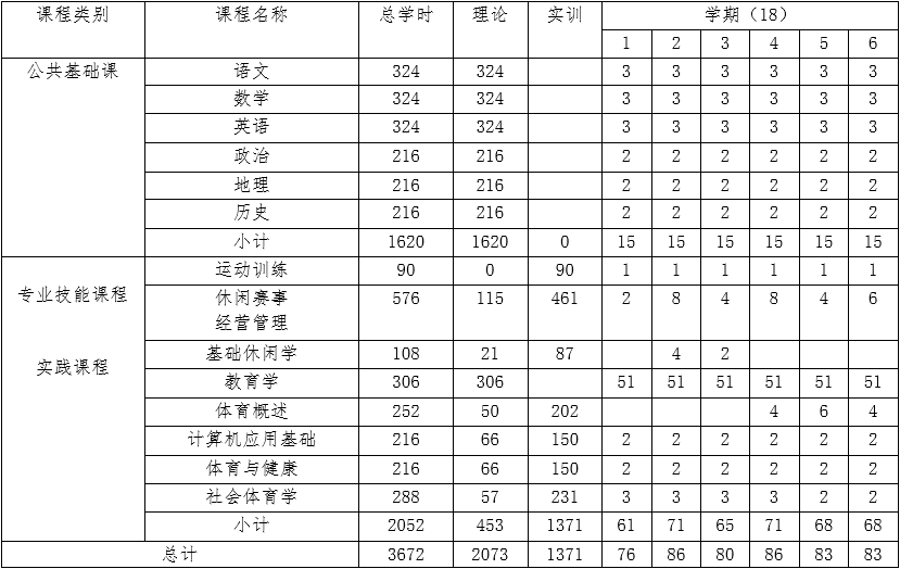 四、休閑體育服務(wù)與管理專業(yè)教學(xué)時間安排