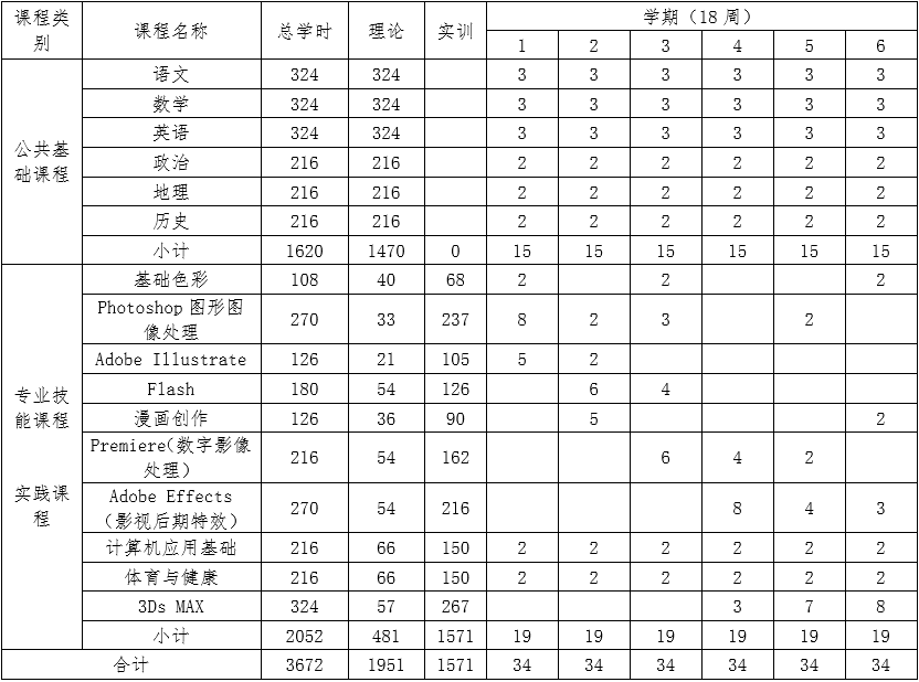 二、動漫與游戲制作教學(xué)時間安排